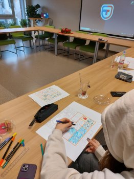 Jelgavas tehnikums Ekopadomes jaunieši kopā ar pedagogu Santu Miķelsoni-Braži 11.12.2025. piedalījās projekta Game On for Climate izstrādes darbnīcā
