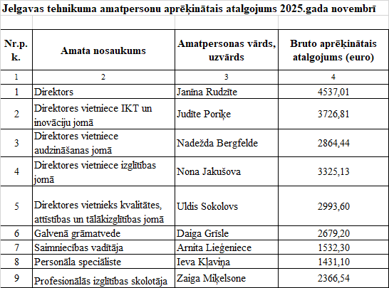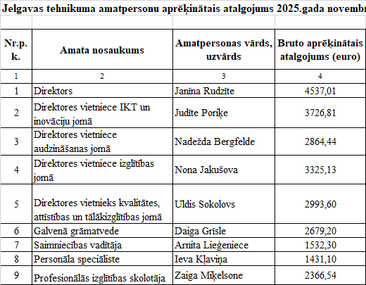 Jelgavas tehnikuma amatpersonu aprēķinātais atalgojums 2025. gada novembrī